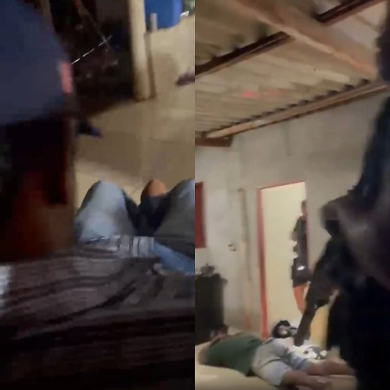 O vídeo mostra o momento em que os policiais chegam à residência após denúncia via telefone. Durante a tentativa de entrada, um dos alvos tentou fugir pelo muro dos fundos, sendo interceptado por disparos antes de os agentes entrarem no imóvel.