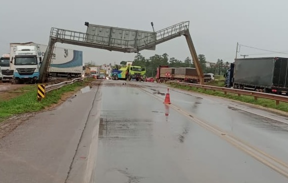 O impacto causou danos consideráveis ao painel, e as equipes da concessionária trabalham na manhã de hoje para realizar a retirada e manutenção do equipamento.